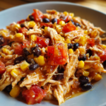- Add diced tomatoes, corn, black beans, and taco seasoning on top of the chicken.