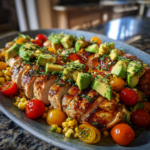 - Slice the chicken and serve it topped with the corn and avocado mixture.
